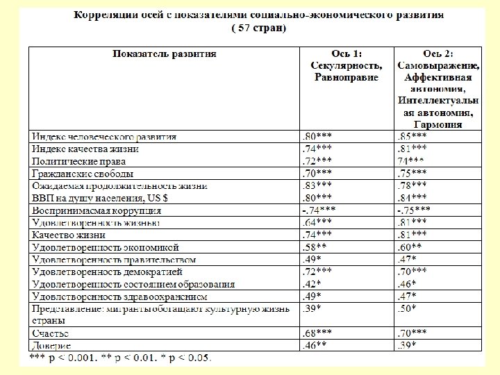 Странам «догоняющего» развития предстоит преодолеть «культурный барьер» , чтобы развить инновационную экономику. n n n Для качественного изменения ценностей должны существовать определенные предпосылки: 1) уровень экономического капитала, делающий выживание гарантированным для всех; 2) уровень социального капитала (доверие, толерантность) — универсальное и равное отношение к другим людям; 3) уровень культурного капитала — распространение ценностей автономии индивида, равноправия (отсутствия страха перед властью), активного личного участия в улучшении окружающего мира, ценностей гармонии (отказ от хищнического отношения к миру, обеспокоенность экологией, бедностью, высокие моральные стандарты). И высокие темпы экономического роста, стимулируемые этими ценностями и соответствующими им институтами.