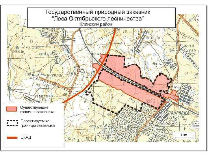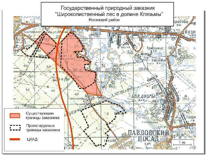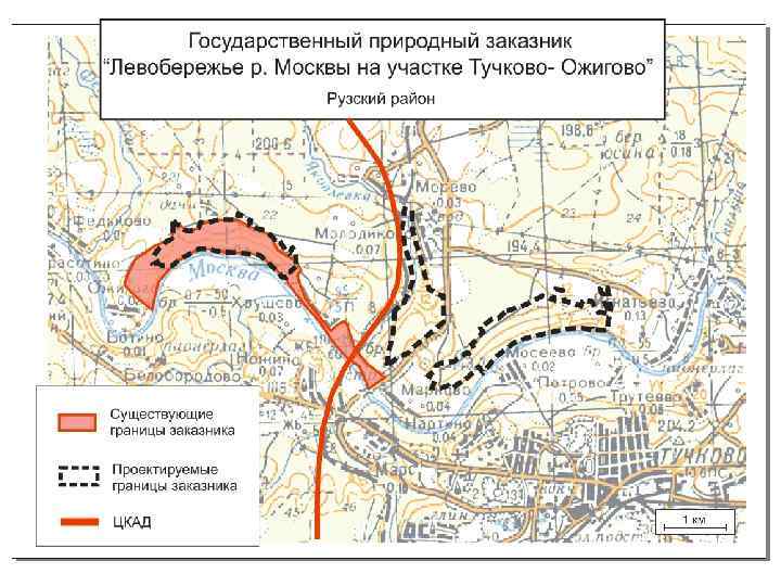Заказники, попадающие в 3 -км зону ЦКАД: 1 ГПЗ Широколиственный лес в долине Клязьмы 2 ГПЗ Система оврагов у ст. Морозки 3 ГПЗ Леса Октябрьского лесничества 4 ГПЗ Левобережье р. Москвы на участке Тучково-Ожигово 5 ГПЗ Древняя озерная котловина у села Орешки 6 ГПЗ Елово-широколиственный лес с участием ясеня 7 ГПЗ Комплекс старых ельников с переходным болотом 8 ПП Леса Дороховского лесничества с комплексом гнезд рыжих муравьев 9 ПП Мозжинский овраг 10 ГПЗ Елово-липовые леса с примесью ясеня и вяза 11 ГПЗ Икшинский овраг 12 ПП Черноольховый лес 13 ГПЗ Болото Гумениха 14 ГПЗ Елово-широколиственный и березовый лес Михайловского лесничества 15 ГПЗ Смешанный лес с участием ясеня и вяза 16 ГПЗ Тростенское озеро и его окружение в радиусе 3 км 17 ГПЗ Елово-широколиственный лес на левом берегу реки Болденки 18 ПП Озеро Бельское с прилегающими лесами 19 ГПЗ Широколиственный лес с примесью березы и осины