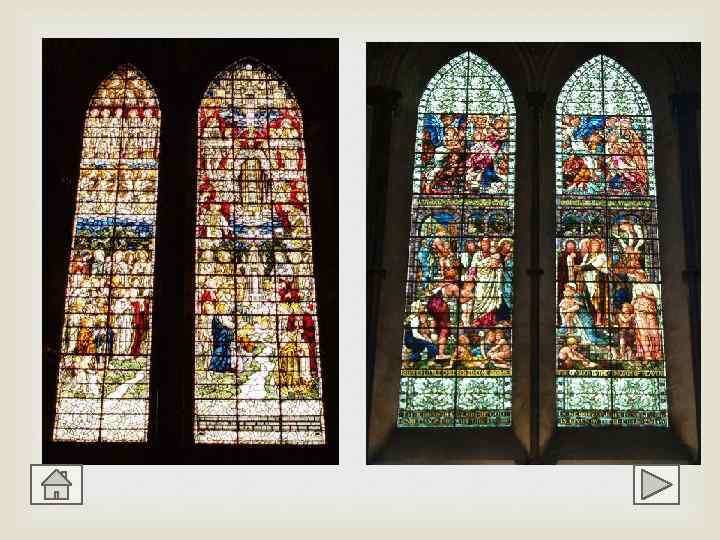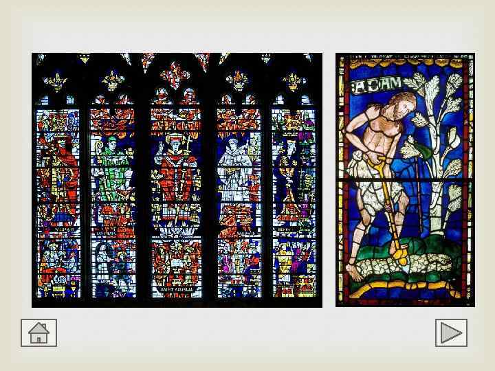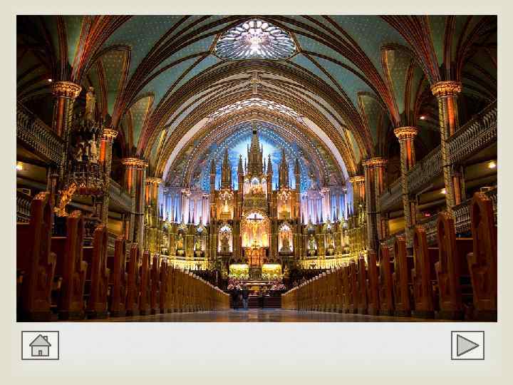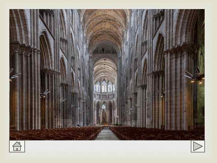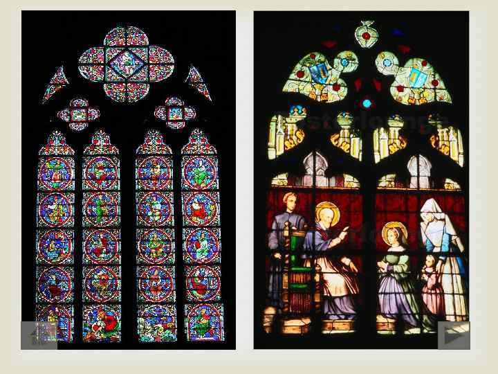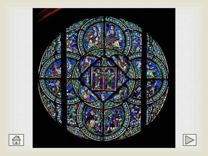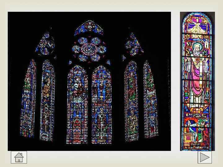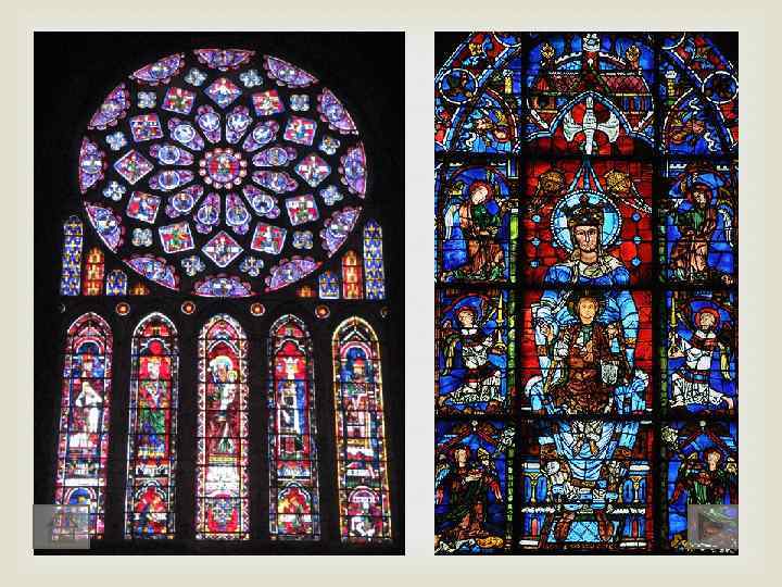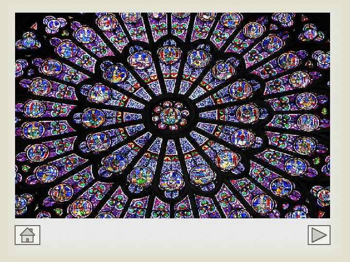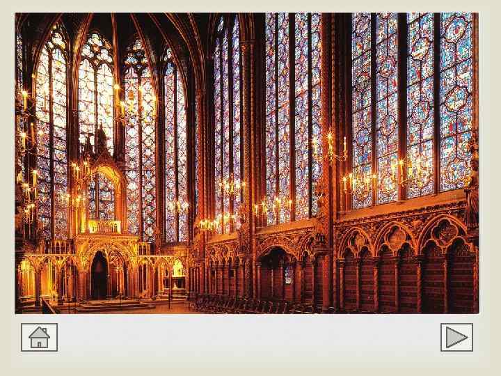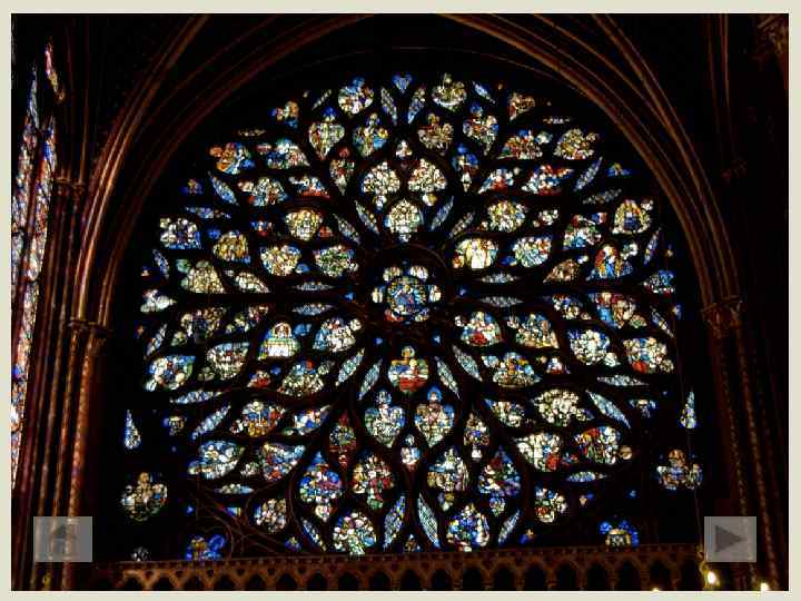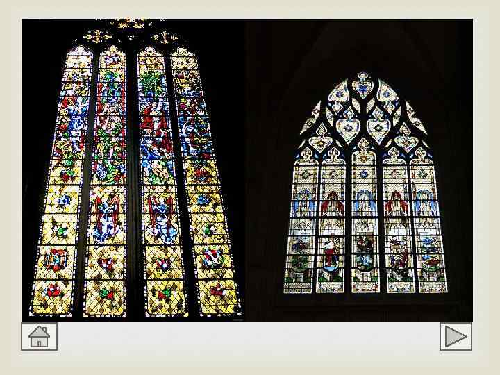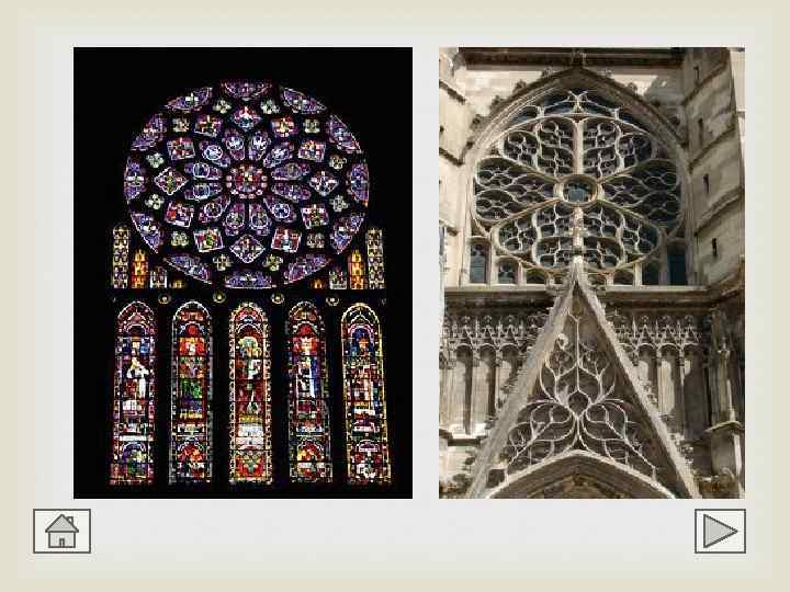 Характерные признаки Для Готики характерны символикоаллегорический тип мышления и условность художественного языка. От романского стиля готика унаследовала главенство архитектуры в системе искусств и традиционные типы культур, зданий. Особое место в искусстве готики занимал собор - высший образец синтеза архитектуры, скульптуры и живописи (преимущественно витражей). Несоизмеримое с человеком пространство собора, вертикализм его башен и сводов, подчинение скульптуры ритмам динамичности архитектуры, многоцветное сияние витражей оказывали сильное эмоциональное воздействие на верующих. Готический собор символизировал порыв к небу; этой же цели должно было служить его богатейшее декоративное убранство - статуи, рельефы, витражи. Разнообразна и тематика витражей, в гамме которых преобладали красные, синие и жёлтые тона.