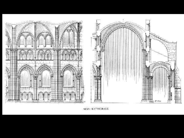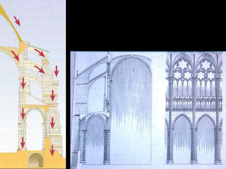 Зарисовка 3. Поперечный разрез готического храма. Столбы, контрфорсы, аркбутаны, своды.