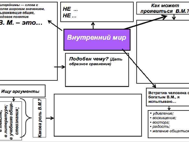 Внутренний мир – это наши мысли, эмоции, переживания, чувства, стремления к чему-то. . . Он раскрывается в стремлении человека к добру, познанию, к пониманию других. . . Докажем это утверждение примерами из текста Остромира и жизненного опыта.