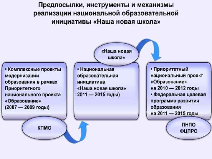 ФЦПРО. «Достижение во всех субъектах Российской Федерации стратегических ориентиров национальной образовательной инициативы «Наша новая школа» современные модели доступного и качественного дошкольного и общего образования; ¢ модели региональных и муниципальных образовательных систем, обеспечивающие государственно-общественный характер управления образованием. ¢