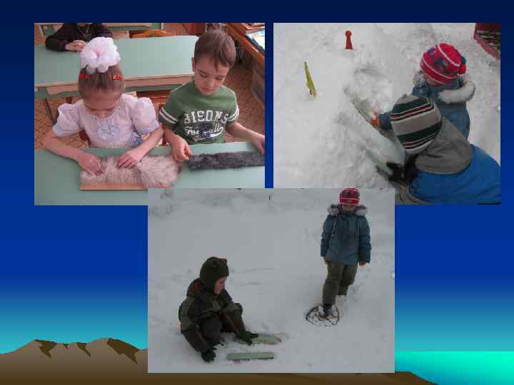 Из каких материалов сделаны лыжи? – Лыжи делали из коры деревьев, шкур животных (лося, оленя, нерпы), веток или дощечек. – Мех для лыж выбирали с коротким ворсом. Почему же мех должен быть коротким, а не длинным? Потому что такие лыжи не проскальзывают при подъеме в гору. И мы с друзьями это проверили!