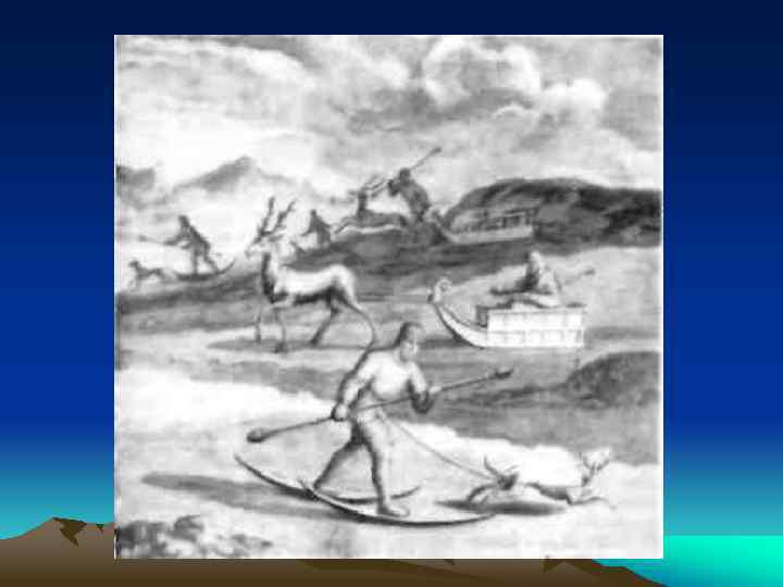 Как и где использовались лыжи раньше? • Сначала лыжи использовались во время охоты, по глубокому снегу и на войне • Потом на Руси появились народные забавы - катание на лыжах с гор и езда на них за оленями, лошадьми в дни народных праздников зимой.