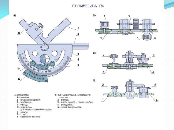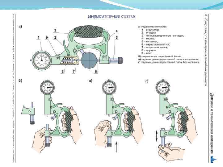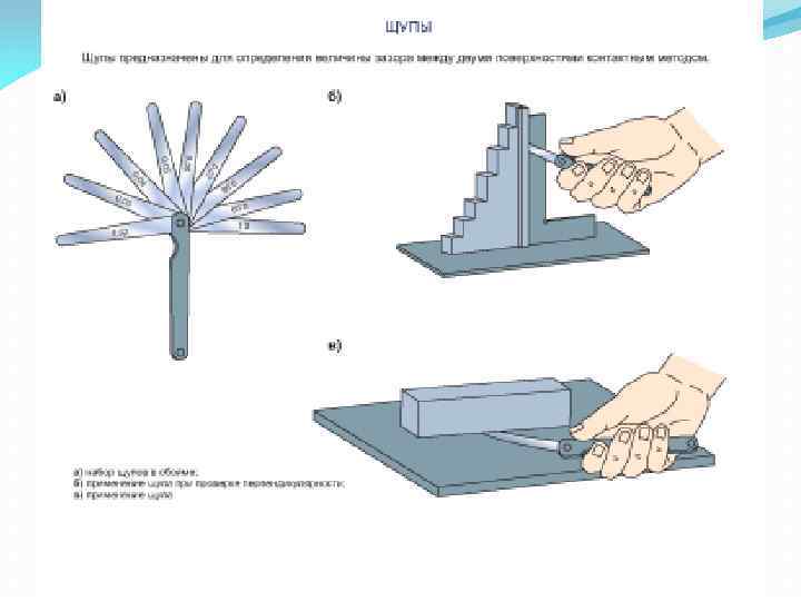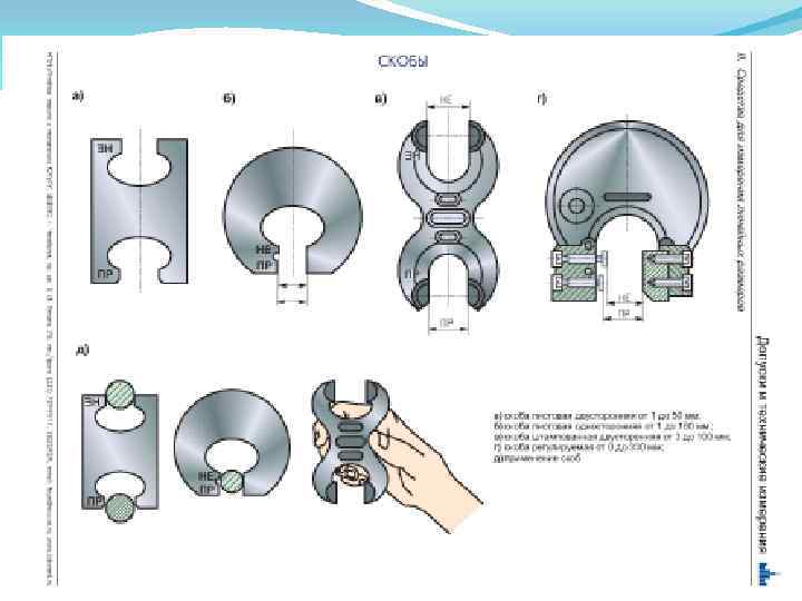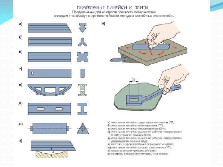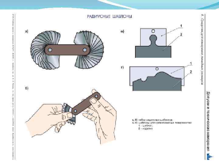 Продолжение 1 вопроса Рис. 1. 12. Лекальная линейка: а - формы поперечного сечения; б прием измерения Рис. 1. 11. Кронциркуль: а - для наружных и внутренних измерений; б пружинный для наружных и внутренних измерений: 1 - пружина; 2 гайка; 3 винт; в, г - определение размера по кронциркулю с использованием измерительной линейки и штангенциркуля