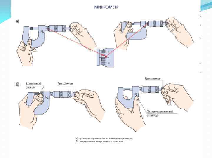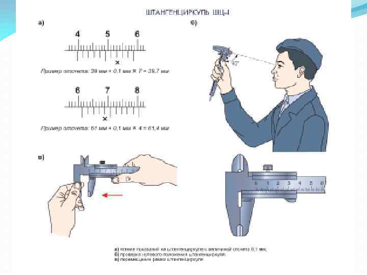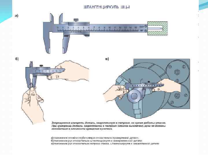 Продолжение 1 вопроса Измерительные и поверочные линейки и кронциркули Рис. 1. 10. Приемы использования измерительной линейки: а неправильный; б, в- правильные