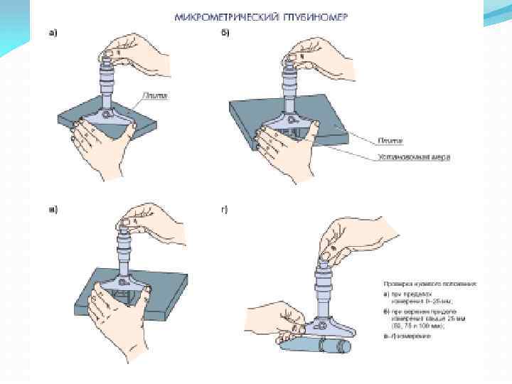 Микрометрические глубиномеры предназначены для измерения глубины отверстий, пазов и т. п.