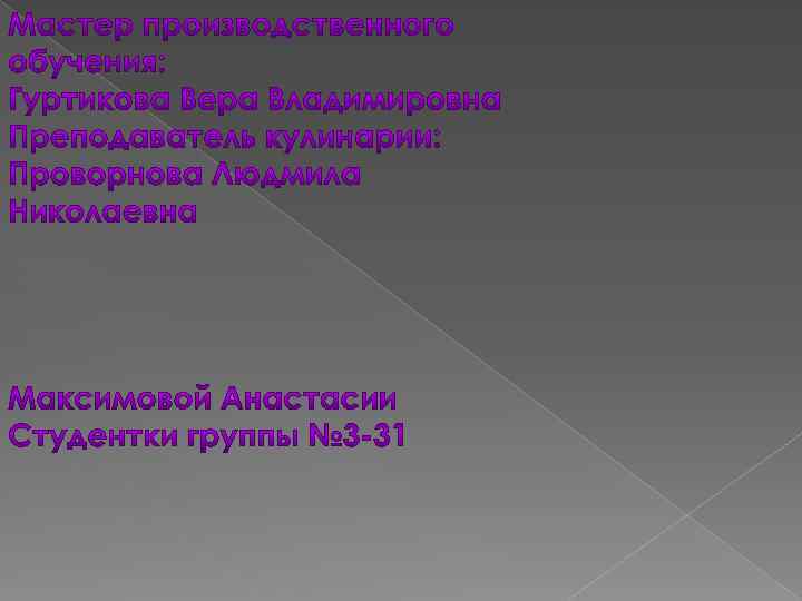 Выпускная практическая квалификационная работа Суп овощной с мясом 2. Компот из апельсинов 3. Блинчики с грибами и со сметаной 1.