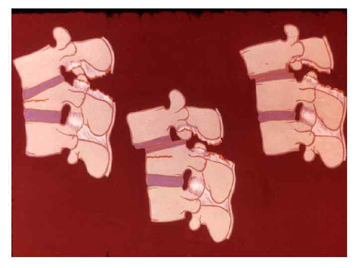 Анатомическая структура трехопорной концепции стабильности позвонка Передняя опорная структура Средняя опорная структура • Передняя • Задняя продольная связка • Передняя часть • Задняя часть фиброзных колец • Передняя • Задняя половина позвонков Задняя опорная структура • Надостистая связка • Межостистая связка • Суставные капсулы • Желтая связка • Дуги позвонков