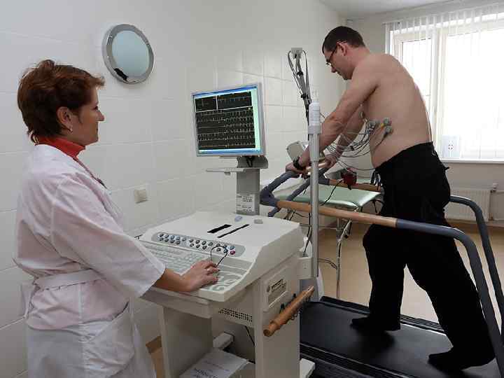 Диагностика • Электрокардиограмма в состоянии покоя (ЭКГ) - это запись электрической активности сердца, по ней можно определить степень кислородного голодания сердца (ишемию) и вероятность сердечного приступа.