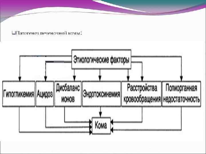 Печеночная кома • Это клинический синдром, характеризующийся расстройством сознания и признаками печеночно -клеточной недостаточности, обусловленной массивным некрозом клеток печени.