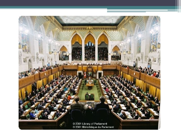 Duties • The duties of the Senators are: 1. to provide a “sober, second thought” to the House of Commons 2. to review bills presented by the MP’s and send them back for amendments if needed 3. to delay or veto the passage of a bill 4. to introduce bills (but not on taxes) 5. to work on committees that study issues of public concern, such as health concerns 6. to question and challenge the gov’t