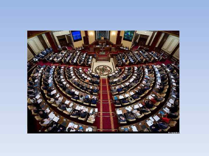 Legislative branch • The legislature, known as the Parliament (Parliament), has two chambers. The Assembly(Mazhilis) has 77 seats, elected for a four-year term, 67 in single seat constituencies and 10 by proportional representation. The Senate has 47 members, 40 of whom are elected for six-year terms in double-seat constituencies by the local assemblies, half renewed every two years, and 7 presidential appointees. In addition, ex-presidents are exofficio senators for life. Majilis deputies and the government both have the right of legislative initiative, though most legislation considered by the Parliament is proposed by the government.