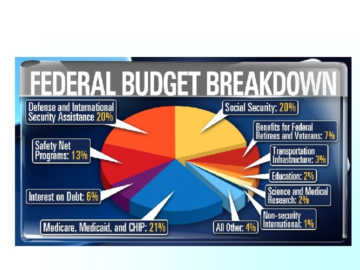 • Social Security reform? ? – Ratio of those paying in vs. those taking out: • 1950 = 16. 5: 1 • 2000 = 3. 4: 1 – Project it could run out by 2041 • 48 million Americans currently collect Social Security payments and number is increasing