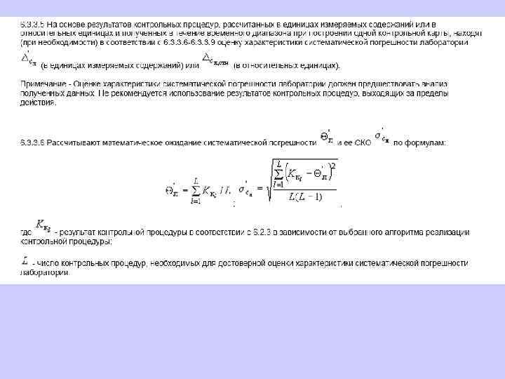 ü ü Величина μ - истинное или принятое опорное значение измеряемой величины для данного стандартного образца - получена другим образом (например, в ходе межлабораторного эксперимента или теоретически), однако она не существенно отличается от . Это означает, что систематическая погрешность данной лаборатории Δ невелика. В этом случае карта оценок систематической погрешности может рассматриваться как дополнительная к карте Шухарта. ü Величины μ и существенно различаются, то есть систематическая погрешность данной лаборатории Δ велика. В этом случае карту оценок систематической погрешности можно использовать лишь для ориентировки.