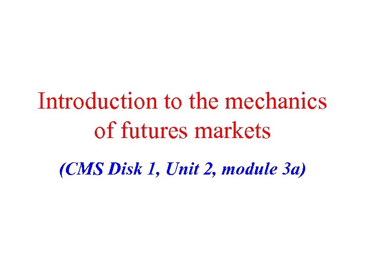 Introduction to the mechanics of futures markets (CMS Disk 1, Unit 2, module 3 a)