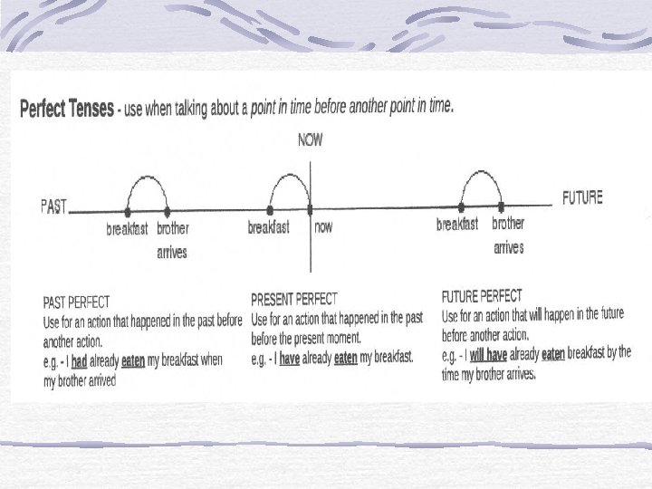 Identify the verbs Our designer told us that the colour blue has a calming effect. It causes the release of calming hormones