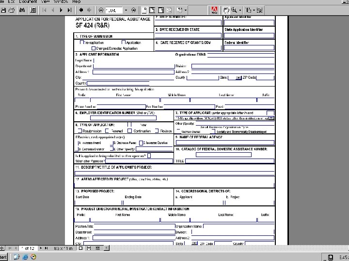 R&R Application – Background Information (Cont’d) Application consists of: the data elements, § forms, and § associated instructions for completion of each data element; § Was designed with the concept of autopopulating and auto-calculating in mind; this has turned out to be a significant challenge for the Grants. gov PMO;