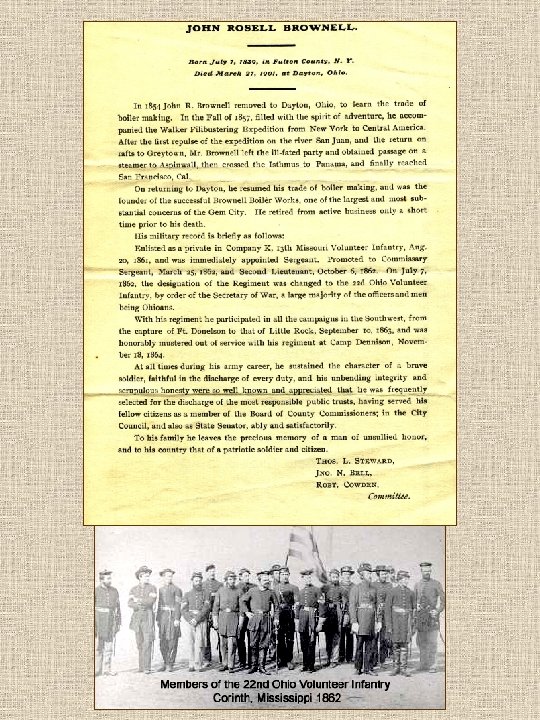 John Roselle Brownell (d 3 27 1901) Age 61 Copy of Original Induction And Discharge Papers “Ohio 22 nd” Union Army 1862 1864
