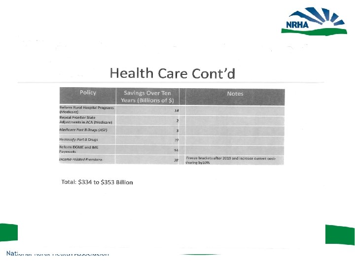 Inside and Outside Strategy • NRHA has hit and will continue to hit key Congressional targets • Administration; WH call, HRSA • Outreach to all rural associations • • Grassroots must be fully mobilized Call and email Member Go to District Office Letters to editor