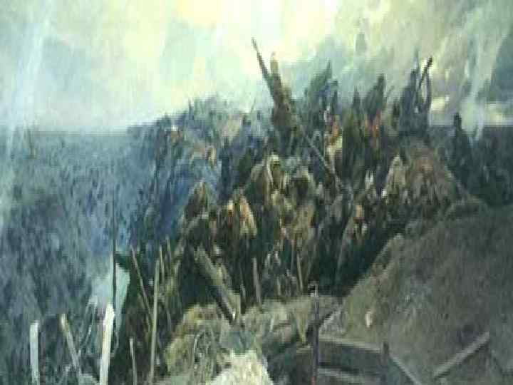 Разгром П. Врангеля. М. Самсоно в. Переход через Сиваш. Части Красной Армии были переброшены на юг и на чали штурм Перекопского перешейка, но сразу овладеть мощными укреплениями не удалось. 8 нояб ря один из отрядов форсировал Сиваш и ударил в тыл белогвардейцам. Вскоре укрепления на Перекопе и Чонгаре перешли в руки большевиков. Остатки белогвардейцев устремились в Севастополь в надежде бежать за границу, но удар, нанесенный Фрунзе, ликвидировал остатки Добровольческой армии.