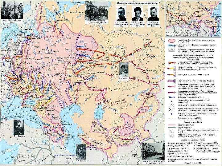 Заключительный этап войны (1920 г. – октябрь 1922 г. ) В 1920 г. в Средней Азии при поддержке войск Туркестанского фронта под командованием М. В. Фрунзе была свергнута власть хивинского хана и бухарского эмира. Были образованы Бухарская и Хорезмская советские республики. В Закавказье местные коммунисты при Красная поддержке Красной Армии установили советскую Армия на власть. В апреле 1920 г. было свергнуто Дальнем правительство мусаватистов и образована Азербайджанская советская социалистическая Востоке республика. В феврале 1921 г. советские войска захватили Тифлис, после чего была провозглашена Грузинская советская социалистическая республика. К весне 1920 г. Красная Армия с боями вышла к Забайкалью. Дальний Восток был оккупирован японцами. Чтобы избежать столкновения с ними, правительство РСФСР способствовало образованию формально независимого "буферного" государства - Дальневосточной республики (ДРВ) со столицей в Чите. С ноября 1920 г. армия ДРВ приступила к боевым действиям против остатков белых армий, поддерживаемых японцами, а в октябре 1922 г. заняла Владивосток. Дальний Восток был очищен от белогвардейцев и интервентов. После этого ДРВ была ликвидирована и вошла в состав РСФСР. Таким образом, на территории бывшей Российской империи, за исключением Литвы, Эвакуация японской армии из Владивостока Латвии, Эстонии, Польши, Финляндии, победила Советская власть.