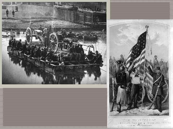 По часовой стрелке, начиная с правого верхнего изображения: Пленные конфедераты в Геттисберге; Битва за форт Хиндман, Арканзас; Роузкранс на Стоунз-Ривер, Теннесси