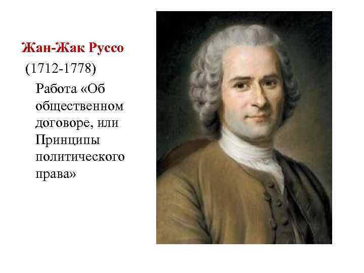 Жан-Жак Руссо (1712 -1778) Работа «Об общественном договоре, или Принципы политического права»