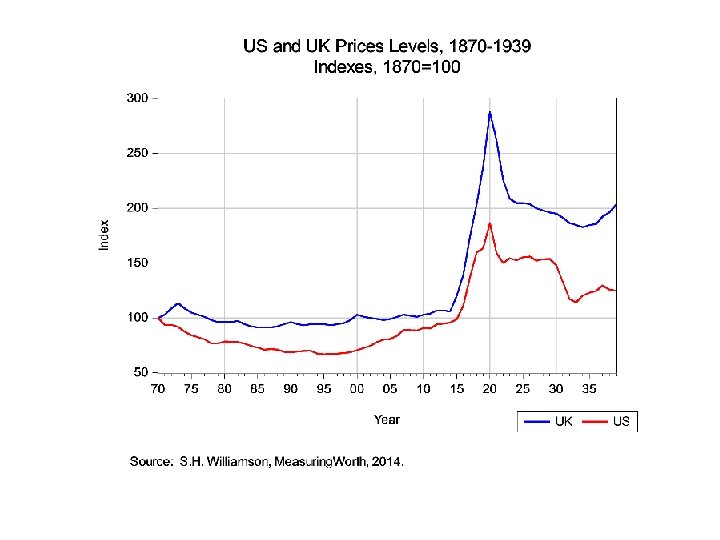 The Gold Standard Quantity theory of money: MV = PY V determined by financial practices Y determined by resources and technology Price level rises when money supply increases Each nation pledges to redeem its currency for gold at a fixed price Issue of currency tied to government holdings of gold World money supply rises with new gold discoveries If imports exceed exports, nation loses gold → money supply contracts, price level falls → stimulates exports, reduces imports → trade automatically rebalanced