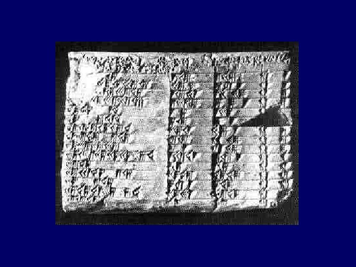 Babylonians Absorb Sumerians 1900 BC Sumerian/Babylonian Tablet: Sum of first n numbers Sum of first n squares “Pythagorean Theorem” “Pythagorean Triples” some bivariate equations 1600 BC Babylonian Tablet: Take square roots Solve system of n linear equations