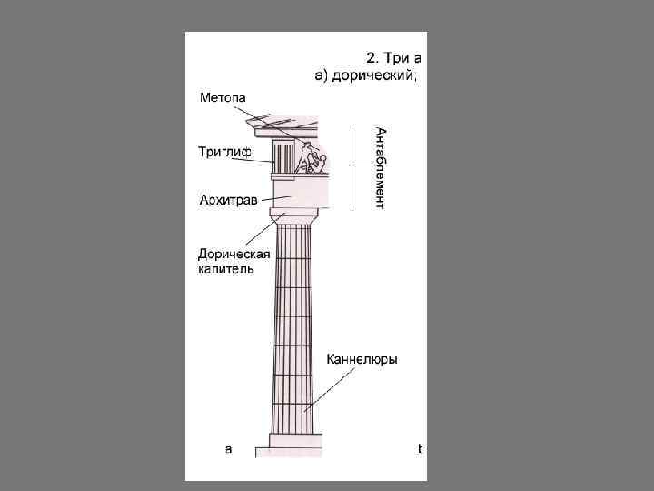 Получил название от дорических племен, которые его создавали. антаблемент капитель фриз архитрав абака эхин барабаны каннелюры стилобат