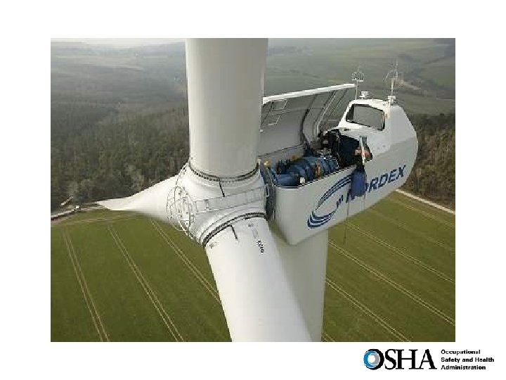 Wind Energy Hazards Ø Falls Ø Confined Spaces Ø Lockout/Tagout Ø Crane, Derrick and Hoist Safety Ø Electrical Ø Machine Guarding Ø Other Typical Workplace Hazards Picture Source: http: //simplifiedsafety. com/solutions/application/wind-turbine/
