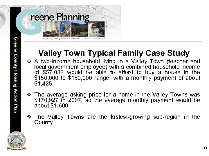 River Town Community Case Study Slides Source: Greene County Multiple Listing Service Asking Price $112, 900 Asking Price $119, 000 Asking Price $120, 000 17