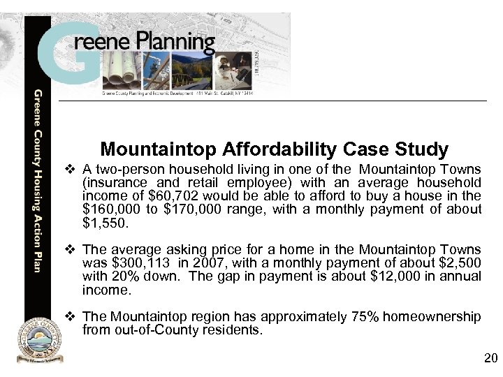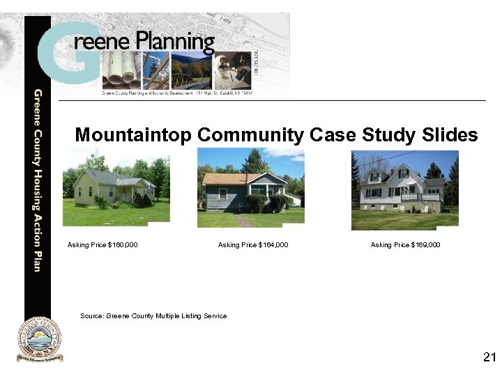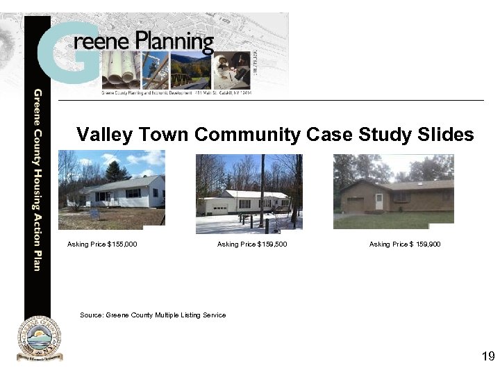 Valley Town Community Case Study Slides Asking Price $155, 000 Asking Price $159, 500 Asking Price $ 159, 900 Source: Greene County Multiple Listing Service 19