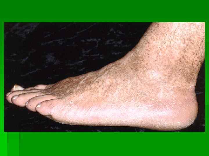 Клинические формы эпидермофитии стоп: § § § Стертая Сквамозная Гиперкератотическая Интертригинозная Дисгидротическая Онихомикоз (поражение ногтей)