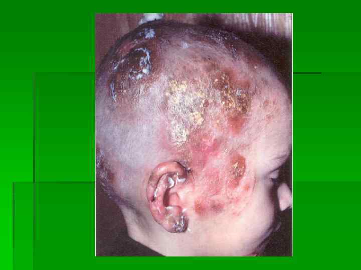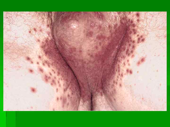 Кандидоз гладкой кожи § Развивается вторично, при распространении процесса из складок § Появляются обильные мелкие пузырьки с вялой покрышкой § При вскрытии образуются эрозии красного цвета