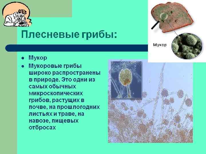 Сапротрофы • Большинство макромицетов селится на всевозможных растительных остатках – опавшей хвое и листве, на веточках и шишках, стеблях однолетних трав и других элементах лесного опада, в подстилке – это подстилочные сапрофиты. К сапротрофам также относятся плесени (пеницилл, мукор), селящиеся на почве, хлебе, гниющих фруктах, и дрожжи.