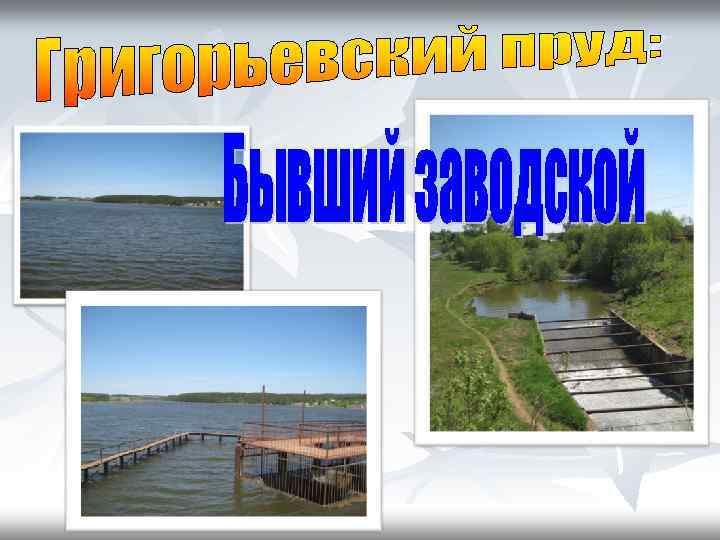 «Плотина, пересекавшая Сюзьву , была длиной 350 м. и шириной около 40 метров. Разлившийся пруд достигал более 5 км в длину и 0, 5 км. в ширину» Сегодня- ширина 0, 5 км, длина-2, 6 км.