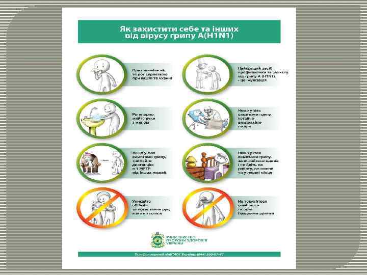 Епідеміологія Палата для хворих на грип під час епідемії іспанського грипу 1918– 1919 років, місто Вашингтон Джерелом інфекції є тільки хвора людина (з останніх годин інкубаційного періоду по 4 -5 -й день хвороби). Механізм передачі інфекції — повітряно-крапельний. Хвора людина, навіть із легкою формою грипу, становить небезпеку для оточуючих впродовж усього періоду прояву симптомів, що в середньому становить 7 діб. Імунітет після перенесеного грипу дуже нестійкий, можливі повторні захворювання навіть упродовж одного року; цьому сприяє те, що різні типи та підтипи, а також серологічні варіанти збудника В Україні випадки смерті від грипу реєструють лише тоді, коли вірус лабораторно виділяють з патологоанатомічного матеріалу. Наприклад, за епідемічний сезон грипу 2007– 2008 років в Україні офіційно зареєстровано всього 3 летальних випадки від грипу.