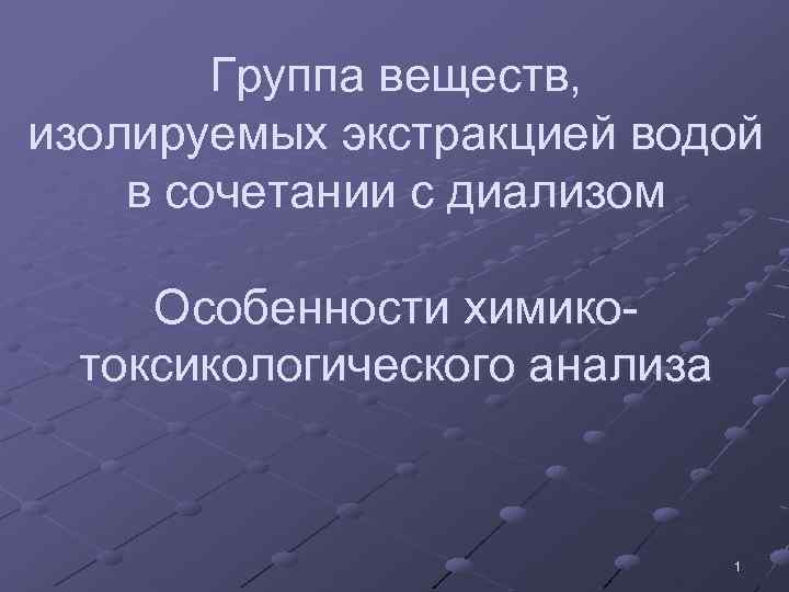 Группа веществ, изолируемых экстракцией водой в сочетании с диализом Особенности химико- токсикологического анализа 1