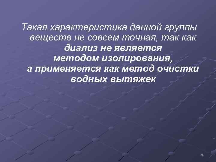 Такая характеристика данной группы веществ не совсем точная, так как диализ не является методом изолирования, а применяется как метод очистки водных вытяжек 3