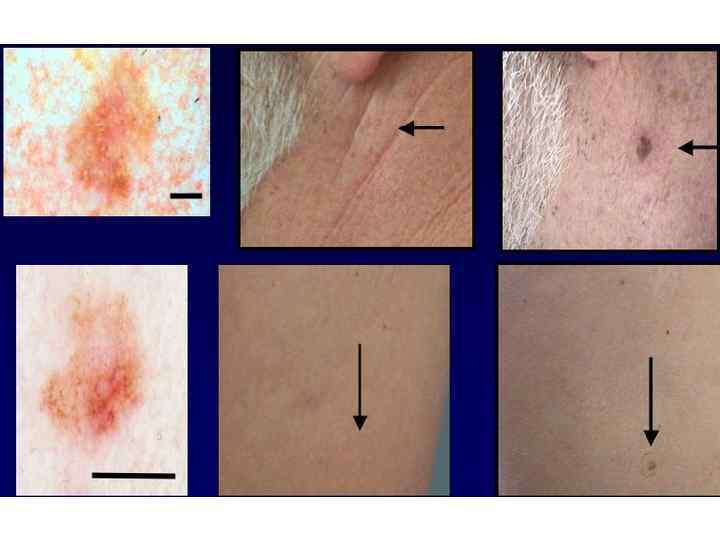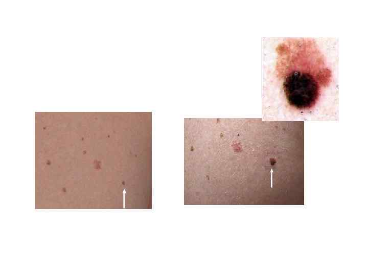 Группы повышенного риска развития меланомы: Облигатные предшественики меланомы • • • Пигментная ксеродерма (дебют в раннем детстве) Предраковый ограничнный меланоз Дюбрейля Диспластический невус (синдром диспластического невуса) _____________ Диспансерное наблюдение 4 раза в год Факультативные предшественики меланомы • • • Крупный врождённый невоцитакрный невус ( с рождения ) Крупный приобретённый невус Крупный клеточный голубой невус _____________ Диспансерное наблюдение 2 раза в год