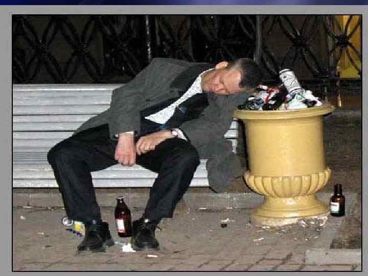 Алкоголь является причиной или условием большинства преступлений. в состоянии алкогольного опьянения совершается: • около 60% всех преступлений; • 90% процентов хулиганских действий подростков; • 56% всех краж; 80% грабежей; • 70% разбойных нападений; • 80% домашнего насилия; • 68% дорожно-транспортных происшествий;