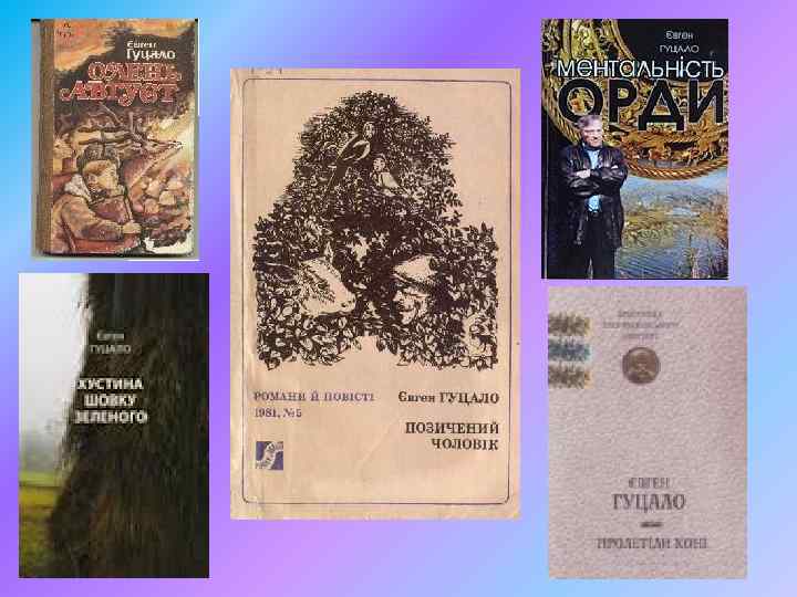 Дитинство Біографія Народився Євген Гуцало 14 січня 1937 року в селі Старому Животові (нині — Новоживотів) Оратівського району Вінницької області в родині сільських учителів. Батько письменника народився в селі Овечаче Бердичівського повіту Київської губернії (зараз це село Дружне Калинівського району Вінницької області). Атмосфера родини сільської української інтелігенції відобразилася на подальшому життєвому шляху хлопчака. Уже з дитинства він був привчений до наук та захоплено поглинав книжки та навчання своїх батьків. Батьки Євгена знали чого вартує книжка, в ті часи, і їм удалося зберегти свою невеличку бібліотеку у воєнне лихоліття і це стало запорукою майбутнього їх сина. Будучи учителями, вони плідно навчали довколішніх дітей та сина і прививали їм тяглість до книжок та навчання. І той, важкий, післявоєнний селянський побут минав для Євгена дуже швидко, адже він поглинав книжки, які ставали йому промінчиком світла та майбуття. Писав самовіддано й натхненно, висилав свої рукописи в усі дитячі, юначі газети й журнали. Але звідусіль приходила однакова трафаретна відповідь: «Працюй над словом!» Адже в тогочассі соціалістичне суспільсто потребувало іншого, зовсім інших тем; треба було писати про збір металобрухту й макулатури, про те, як ти мрієш поїхати працювати на шахту чи піднімати цілину.
