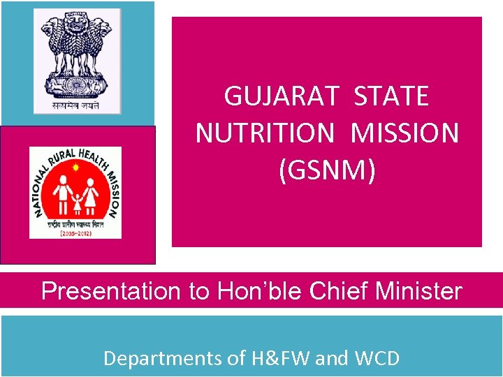 GUJARAT STATE NUTRITION MISSION (GSNM) Presentation to Hon’ble Chief Minister Departments of H&FW and WCD
