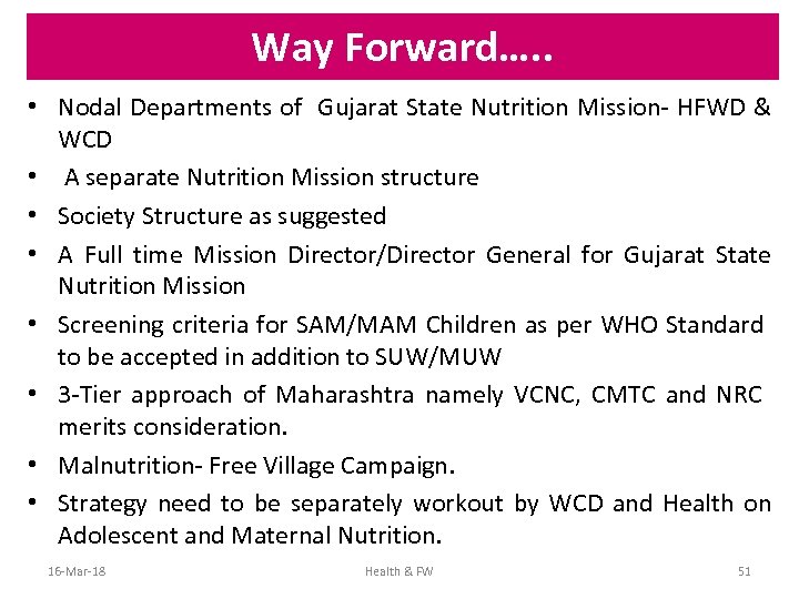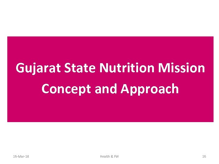 Gujarat State Nutrition Mission Concept and Approach 16 -Mar-18 Health & FW 16