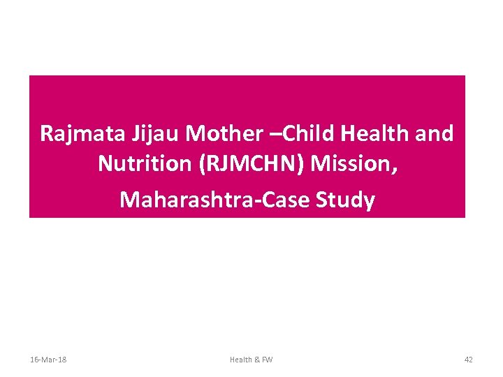 Rajmata Jijau Mother –Child Health and Nutrition (RJMCHN) Mission, Maharashtra-Case Study 16 -Mar-18 Health & FW 42