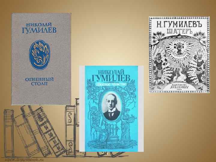 В 1921 году Гумилёв опубликовал два сборника стихов. Первый — «Шатёр» , написанный на основе впечатлений от путешествий по Африке. «Шатёр» должен был стать первой частью грандиозного проекта «учебник географии в стихах» . В нём Гумилёв планировал описать в рифму всю обитаемую сушу. Второй — «Огненный столп» , в который вошли такие значительные произведения, как «Слово» , «Шестое чувство» , «Мои читатели» . Многие считают, что «Огненный столп» — вершинный сборник поэта. С весны 1921 года Гумилёв руководил студией «Звучащая раковина» , где делился опытом и знаниями с молодыми поэтами, читал лекции о поэтике. Живя в Советской России, Гумилёв не скрывал своих религиозных и политических взглядов — он открыто крестился на храмы, заявлял о своих воззрениях. Так, на одном из поэтических вечеров он на вопрос из зала — «каковы ваши политические убеждения? » ответил — «я убеждённый монархист» .