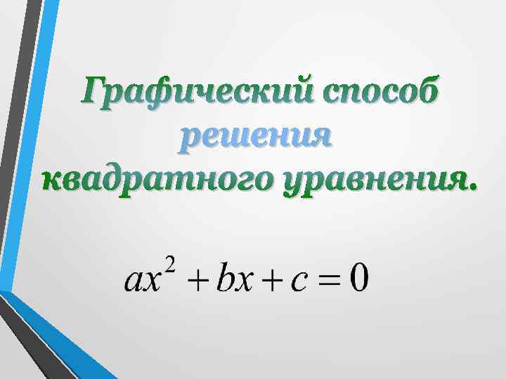 Решим графически уравнение: у = х2 1. Парабола. Ветви вверх. у = - 1, 5 х + 1 2. х 0 2 у 1 -2 -2 Ответ: 0, 5