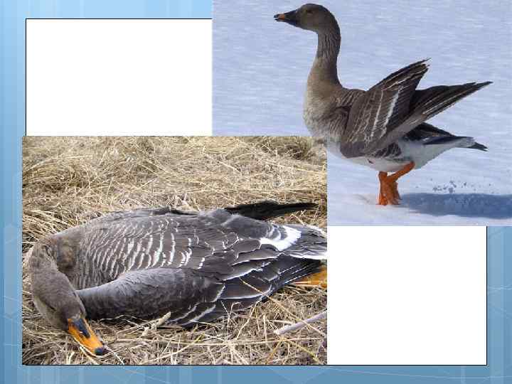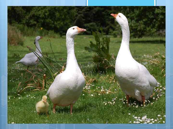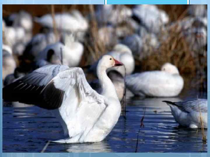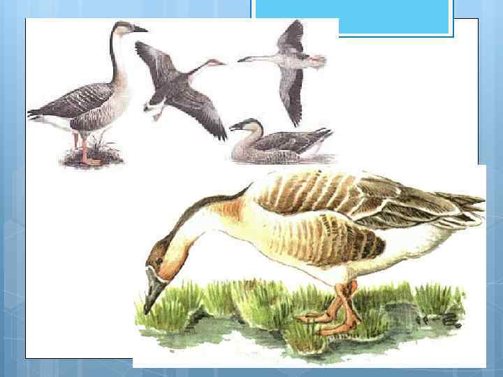 Интересные факты Стая гусей летит в виде клина. Такая форма увеличивает дальность перелета стаи вдвое. Когда передний гусь устает, другой гусь занимает его место. Гуси имеют сильную привязанность к другим в своей группе. Если гусь заболевает или ранен, несколько других гусей может выйти из клина, чтобы помочь и защитить его Гуси выбирают себе пару в возрасте трех лет и остаются моногамными на протяжении всей жизни. Если один из пары умирает, то гусь (гусыня) скорбит несколько лет, прежде чем выбрать нового партнера или может даже остаться в одиночестве Гусыня строит гнездо срывая перышки с тела. Всякий раз, когда она покидает гнездо, то маскирует его ветками и листьями. В течение этого времени, гусь самец будет стоять где-то поблизости, чтобы следить за ним, но не слишком близко, чтобы не выдать расположение гнезда для хищников.